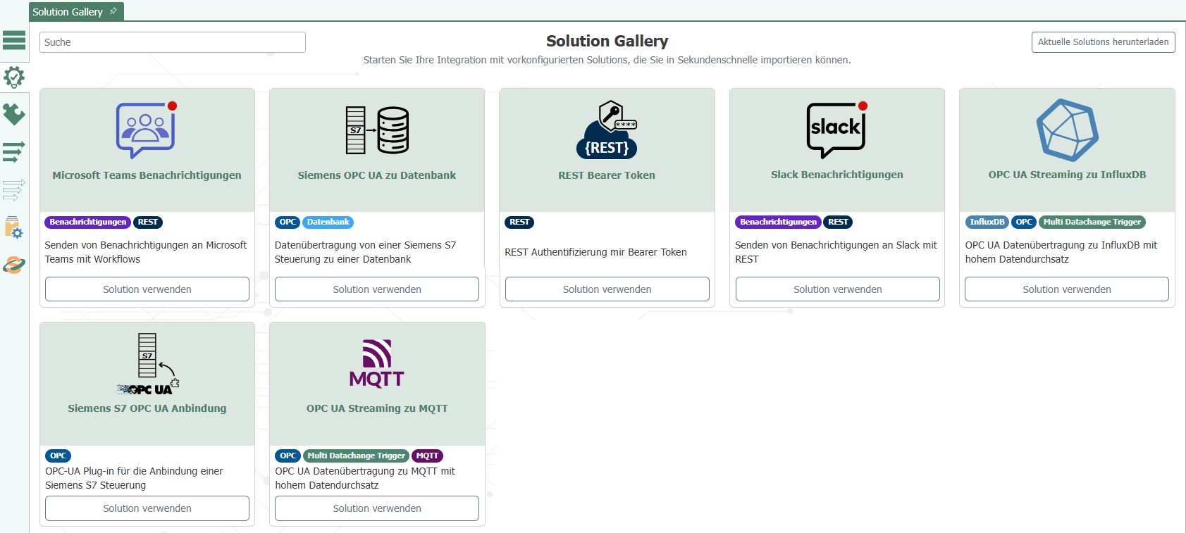 Die Solution Gallery liefert mit wenigen Klicks einsatzbereite Integrationslösungen.
